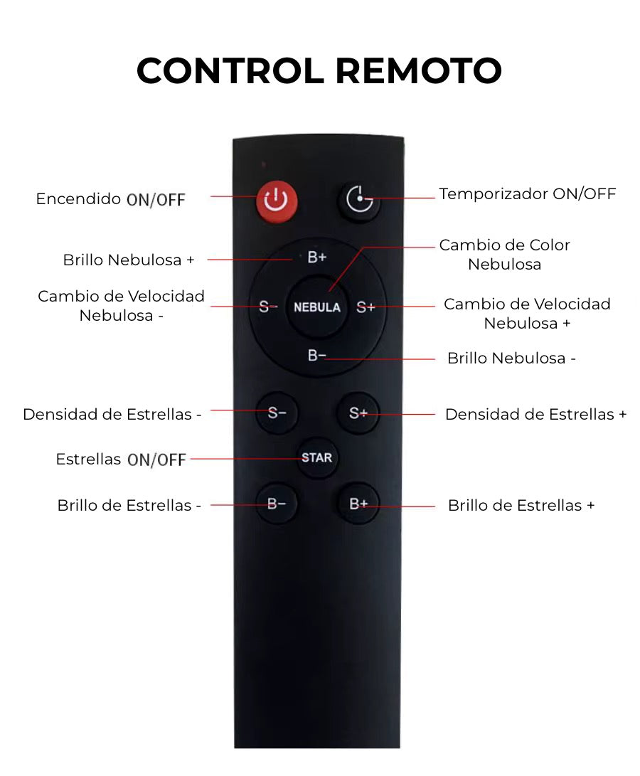 Proyector lámpara de Astronauta con Luz nocturna, proyecta estrellas y nebulosas, muy relajante y entretenido para niños y adultos, cuenta con control remoto 360°Diseño ajustable con variación de colores y velocidades. Además posee opción de temporizador para apagado automático.