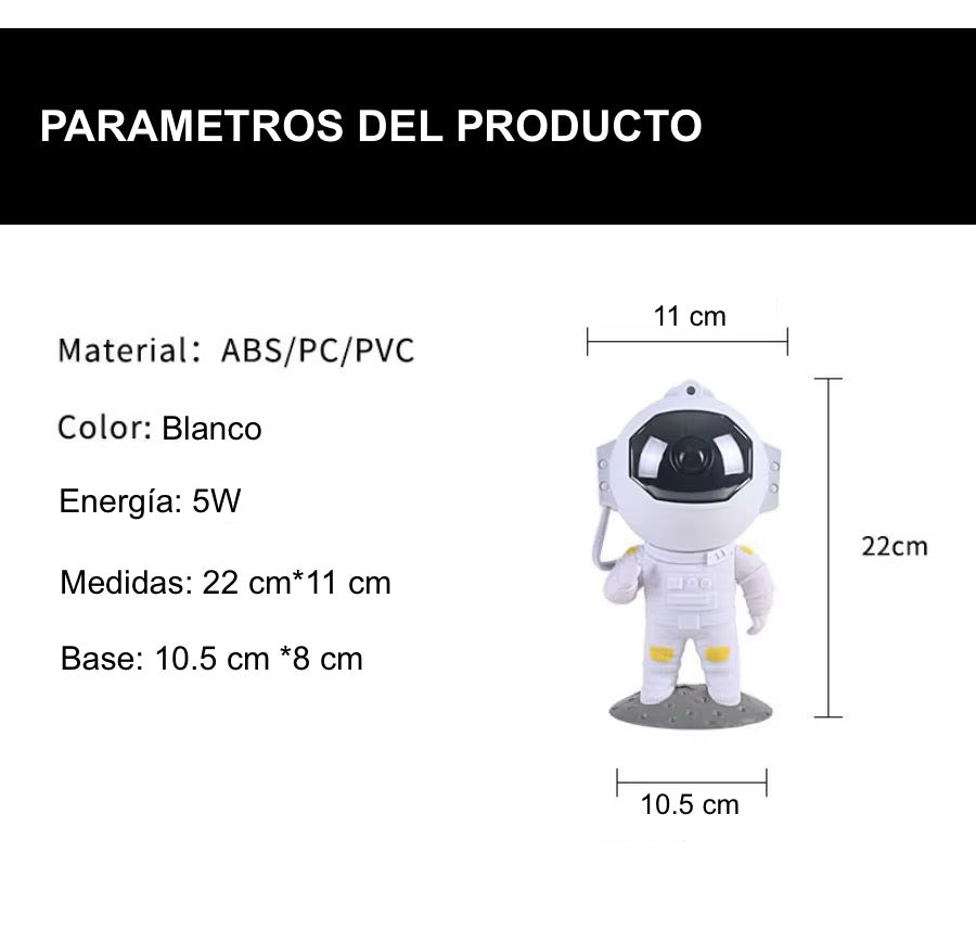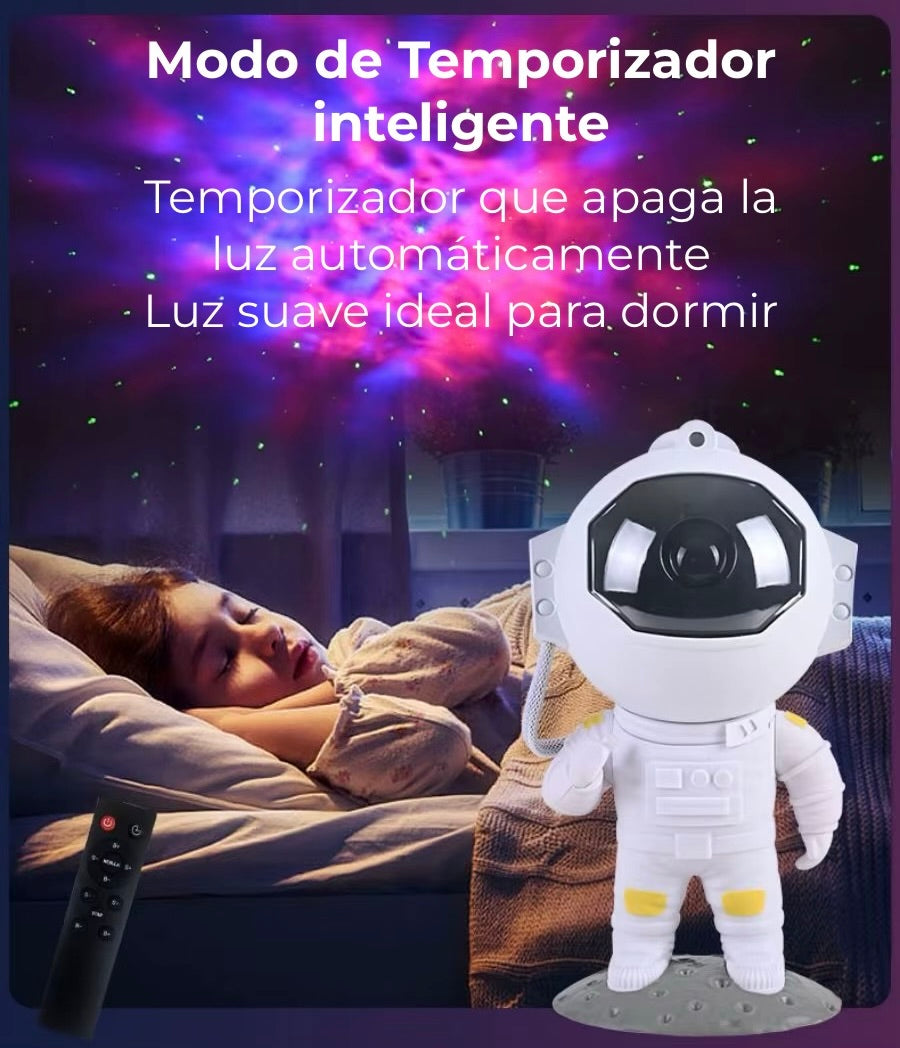 Astronauta Proyector de Nebulosas y Estrellas - 8 variedades de colores de luz, portátil y con control remoto